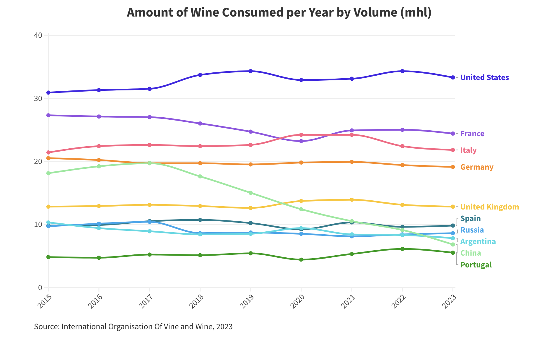 Increased Wealth in Tier-1 and Tier-2 Cities: As China’s middle class grows, there's a significant rise in affluent consumers who are willing to spend on premium experiences, including fine dining, luxury travel, and high-quality wine. Wine tourism is also booming as Chinese consumers travel abroad to explore wine regions like Napa Valley, Tuscany, and the Barossa Valley. This change has resulted in more people drinking high-quality wines from these well-known wine regions.